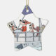 Frio-laxing de Roscoe com seus botões no lago em seu barco do pontão.