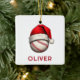 Baseball Ball Red Santa Hat Name Christmas Ceramic Ornament. Fun baseball ball with a red Santa hat and a custom name.