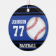 Ornamento De Cerâmica Baseball Personalizado | Azul escuro e preto