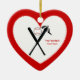 Bater cruzou morcegos e ornamento cerâmico preto-boné, vermelho, em forma cardíaca, que mostra um ícone de pictograma minimalista de morcegos de beisebol cruzados, uma bola, um boné e seu texto vermelho sobre fundo branco com borda vermelha. Este design é um modelo e é completamente personalizável. Personalize-o e altere o texto com monograma, nome ou mensagem. Este design moderno e minimalista faz um presente perfeito para o jogador de beisebol na sua vida. Veja muitas designs na nossa loja de presentes esportivos.