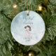 "O Primeiro Ornamento Cerâmico de Natal do Bebê" é uma adorável guarnição com uma doce menina vestindo um macacão de rena, aninhado entre galhos de pinheiro. O que torna este ornamento realmente especial é a opção de personalizá-lo com a informação do seu bebê e a data do seu primeiro Natal. Você também pode adicionar sua própria e querida foto ao fundo, fazer que seja uma lembrança querida que você vai tesourar por anos. Este ornamento personalizado é o presente perfeito para celebrar o primeiro Natal do seu bebê. Você pode personalizá-lo facilmente utilizando as caixas "Editar este modelo de design" no lado direito do item, ou simplesmente clicar no botão azul "Personalizá-lo" para organizar o texto, alterar fontes e cores e até adicionar informações ou imagens adicionais a este design. Faça este ornamento exclusivamente seu e comemore este marco alegre na jornada da sua família. Não é apenas uma bela adição à sua decoração de férias, mas um lembrete sincero do seu bebê no primeiro Natal.