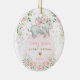 Este Enfeites de natal adorável apresenta elegantes rosas cor-de-rosa-pinceladas, verde botânico suave em verde e ouro, e um adorável elefante bebê adormecido deitado numa bonito lua rosa. Clique no botão "personalizar mais" se quiser reorganizar e formatar o estilo e a posição do texto.