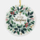 Ornamento De Cerâmica Bebê Foto de Natal Mistletoe Wreath