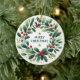 Ornamento De Cerâmica Bebê Foto de Natal Mistletoe Wreath