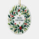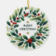 Uma ilustração perfeitamente detalhada da coroa das festas, composta por várias folhas e ramos verdes, enfeitados com bagas vermelhas brilhantes. A coroa apresenta folhagem embaçada, sagrada, e verde-esverdeada com sotaques de iluminação sutis, dando-lhe uma sensação festiva e elegante. O design é delicado, mas vibrante, perfeito para decorações de Natal ou trabalho de arte sazonal. Mude a foto e o nome para o seu querido bebê e tenha um presente de ornamento de árvore da família festiva!