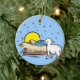Ornamento bonitos da árvore de Natal que caracterizam um bebê Jesus que coloca em um comedoiro com um carneiro que olha sobre ele. Decore sua árvore de Natal com nossos ornamento bonitos que podem ser personalizados por você.