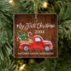 Pincel Moderno Meu Primeiro Natal Bebê Primeiro Natal Enfeite inclui Caminhão Vermelho Vintage com Árvores de Natal, Neve, Presentes de Natal e Balões. Impressão em Madeira Rústica.
