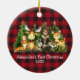 Primeiro Natal do Bebê: Animais da Floresta Florestal de Cerrado Animais da Floresta Vermelha Ornamento de Xadrez de Buffalo. Os Bebês incluem Urso, Veado, Moose, Raccoon, Coelho Coelho, Raposa e Coruja com vegetação florestal. Adicionar Nome.