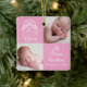 Linda e rosa personalizada decoração de fotos de Natal para uma nova menina. Personalize este presente de natal com sua foto recém-nascida ao lado do lindo anjo voando sobre as palavras A Thrill of Hope the Weary World Rejoices . Aproveite e adicione o nome do seu filho e a data de nascimento em tipografia branca elegante.