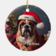 Ornamento De Cerâmica Belo Buldogue com Papai Noel