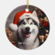 Ornamento De Cerâmica Belo Husky Siberiano com Santa Hat