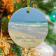 Belo ornamento de praia com uma fotografia maravilhosa à beira-mar com um sangrento bonito na beira das ondas do oceano num dia ensolarado de verão. Lindas ondas de água verde-azul rolam para a praia arenosa onde seu nome é personalizado em uma tipografia teal fofa. Um belo presente de Natal para uma filha, mãe, avó ou neta.