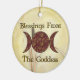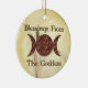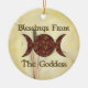 Um círculo com as duas luas crescentes é enchido com as folhas do inverno nos marrons, os vermelhos, as laranjas, e os ouro e as palavras "bênçãos da deusa."