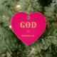 As bençãos de Natal significantes que o ornamento cardíaco com Deus nos abençoa o texto sobre fundo vermelho magenta. Bênção de texto pode ser personalizado. Conte suas bênçãos!