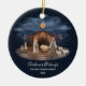 Deseje à família e aos amigos as bençãos de Natal nesta temporada de festas. Um belo design de fé cristã que apresenta o Rei dos Reis Jesus Cristo nosso Senhor Salvador. Cena de Natividade Manger com Mary e Joseph. Monograma com nome ou família e ano de oferta.