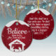 Berry Red Sparkle Winter Wonderland Worship Ceramic Ornament. Christmas Religious Holiday Decor. Infuse your divine inspiration through this captivating design, perfect for nativity Scene enthusiasts, shimmering with a light snowfall background, enhanced by a serene snow-cap. A pristine white nativity scene shines at the heart, along with the empowering words: "Believe Him To Be The Son of God." The back mirrors this enchanting snowy effect, featuring a Bible verse Design in customizable faith text: "And this shall be a sign unto you; Ye shall find the babe wrapped in swaddling clothes, lying in a manger Luke 2:12" scripture. Customize to suit your style, making it a cherished Christian festive keepsake or a meaningful seasonal Xmas gift. Ideal for sharing a Holy Message during the holidays—personalize on Zazzle now and elevate your celebrations!
