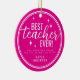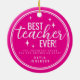 Ornamento De Cerâmica Best Teacher Ever Pink Script Retro