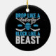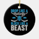 O ornamento de Hockey Goalie com texto azul e branco, capacete com máscara, punhos e bastões de hóquei lê Largar como um Bloco de Borboleta Como uma Besta!
