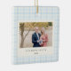 Ornamento De Cerâmica Blue Bow Wreath Gingham Photo Christmas