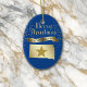 Dê-lhes algo bonito do estado excelente de Dakota do Sul! Na frente desse ornamento está uma silhueta de ouro brilhante do estado, com uma estrela de ouro mais escura imposta sobre ele. Acima do estado e da imagem estelar está a mensagem de brilho MERRY CHRISTMAS no script, e um banner com o texto em azul SUL DAKOTA. À sua volta estão todos os flocos de neve dourados. As imagens e o texto são colocados sobre um fundo azul profundo. A parte de trás do ornamento tem campos de texto em dourado claro para você personalizar, e uma segunda imagem de estrela dourada. Você pode mudar a cor de fundo, se quiser, escolhendo PERSONALIZAR.
