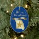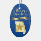 Mande algo bonito do Estado excelente de Missouri! Na frente desse ornamento está uma silhueta de ouro brilhante do estado, com uma estrela de ouro mais escura imposta sobre ele. Acima do estado e da imagem de estrela está a mensagem de brilho MERRY CHRISTMAS no script, e um banner com o texto em azul MISSOURI. À sua volta estão todos os flocos de neve dourados. As imagens e o texto são colocados sobre um fundo azul profundo. A parte de trás do ornamento tem campos de texto em dourado claro para você personalizar, e uma segunda imagem de estrela dourada. Você pode mudar a cor de fundo, se quiser, escolhendo PERSONALIZAR.