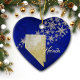 Ornamento De Cerâmica Blue Dourado Snowflake Nevada Heart