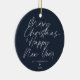 Ornamento De Cerâmica Blue Minimalist Modern Script Feliz Natal