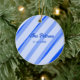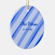 Ornamento De Cerâmica Blue pastel add name date boho retro lines pattern