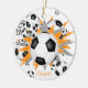 Este ornamento temático de futebol esportivo apresenta uma "explosão" de bolas de futebol em tamanhos variados e em formas laranja, cinza e estrela branca - um pequeno padrão de bolinhas brancas sobrepõe-se à estrela da cinza - personalizar com o nome do jogador ou do fã na frente, ano comemorativo no verso - katz_d_zynes