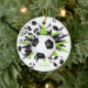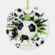 Este adorno cerâmico de futebol bonito apresenta uma "explosão" de bolas de futebol em tamanhos variados e formas verdes, pretas e brancas brilhantes - um pequeno padrão de bolinhas brancas sobrepõe-se à estrela verde - personalizar com o nome do jogador ou do fã na frente, ano comemorativo na parte de trás - katz_d_zynes