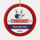 ESTRIKEOLOGISTA - um design humorístico para aqueles que amam a tigela. Se você adora dar um golpe, essa design engraçada de boliche é para você! Personalize-o com suas próprias informações personalizadas. O design apresenta uma grande bola de boliche azul e os últimos três pinos de um golpe derrubados no ar! Este Enfeites de natal pendurado faz um presente único e agradará a qualquer jogador. Claro que pareceria excelente preso em um presente ou enforcado em outros lugares além de uma árvore de Natal. Perfeito para uma beco de boliche, amigo, torneios. Essa mesma design de boliche também está disponível em centenas de outros itens do Compro Ologist.