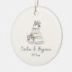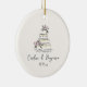 Este ornamento apresenta um fundo de creme com um esboço de bolo floral rosa em um layout minimalista e elegante. A paleta de creme e rosa combina com nomes e data escritos à mão em uma lembrança suave e romântica. Personalize usando o modelo de texto editável com o nome do casal e a data do casamento. Um detalhe simples e atemporal para celebrar um ano de recém-casados ou presentear os noivos.