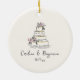 Ornamento De Cerâmica Bolo de Casamento com Doodle de Creme Rosa Escrito
