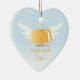 Um Enfeites de natal com uma personagem sorridente de bolo comida de anjo. Este bolo fofo tem asas e um halo, como parece de um fundo azul. As palavras "Angel Comida Cake" estão escritas abaixo dele e podem ser personalizadas. Arte de Comida de Doces de Comida de Anjo | ©Melissa Patton — Artista/Ilustrator
