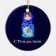 Uma boneca de ninho russa é decorada para o Natal. Um presente de Natal excelente para aqueles que amam aqueles Matryoshkas russos com um dentro de boneca, o outro. Disponível em roupas de mulheres, crianças e crianças. Lettering diz "Feliz Natal" em russo