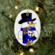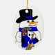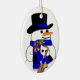 Um boneco de neve do prado vestido em um chapéu alto, em um lenço azul e em uns mitenes, está pronto com seu saxofone para jogar um acordo.