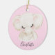 Enfeite cerâmico de elefante rosa-rosa, doce, fofo e cinza. Adicione seu próprio nome personalizado e crie um ornamento especial!