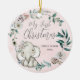 Esta elefante moça floral de aquarela meu primeiro ornamento cerâmico de Natal faz uma maravilhosa manutenção. Esta rua da moda 1 apresenta uma ilustração elefante fofinha, flores cor-de-rosa e brancas, letra moderna do roteiro de caligrafia em fundo cor-de-água rosa. Adicione sua foto de bebê às costas. A FOTO DE AMOSTRA DE BEBÊ NÃO ESTÁ INCLUÍDA. SUBSTITUA POR SUA PRÓPRIA FOTO ANTES DE ENCOMENDAR.