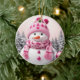 Ornamento De Cerâmica Bonito Pink Xmas Snowman