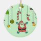 Perfeito para decoração de árvore de Natal! Um design de Natal bonito de Papais noeis, renas, bonitinhos e doces pendurados no topo da estocagem de Natal contra um legal fundo verde de menta. Este design na moda, fofo e estilo cartoon é perfeito para crianças e toda a família. Celebre o Natal com um sorriso na sua cara!