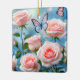 Ornamento De Cerâmica Borboleta Na Flor Rosa