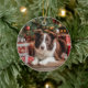 Este Enfeites de natal adorável, com uma collie da fronteira marrom e branca deitada debaixo de uma árvore de Natal, é um presente maravilhoso para qualquer amante da Border Collie.