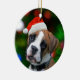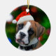 Cachorro branco e desfiladeiro veste um chapéu de Papai Noel muito pequeno e fica bonito com luzes de Natal brilhantes no cão de fundo amante ornamento cerâmico de Natal