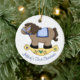 O primeiro ornamento cerâmico de Natal de um bebê bonito, com gráficos de um cavalo marrom balançando, com cobertor azul e rédeas em foguetes amarelos. Personalize todo o texto para ler o que você quer. O verso é feito idêntico à frente e o texto mudará em ambos os lados ao mesmo tempo, quando você personalizar.