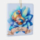 Bela, floral brilhante, doce sonho dormindo fada vestindo uma coroa de flores com fundo azul.