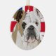 Este ornamento cerâmico mostra meu desenho de um Bulldog Inglês contra um Union Jack. Originalmente, os Bulldog foram criados em Inglaterra para a caça à Bull, mas isso acabou por ser banido. Os Bulldog modernos, são gentis, amigáveis, leais e gentis, e fazem belos animais de estimação. Winston Churchill foi comparado a um Bulldog Britânico.