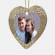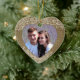 Este ornamento de manutenção de feriado apresenta sua própria fotografia dentro de um bonito burlap castanho faux e uma estrutura de renda floral branca. A parte de trás do ornamento tem a mesma estrutura em forma de coração com seu texto personalizado em marrom. Isto faz um belo presente de guardas para recém-casados ou qualquer casal. *Crédito de design de renda e burlap para ChiliPapers.
