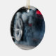 Carro preto a fazer queimaduras, rodinhas que provocam a fumaça dos pneus. Fotografia.
