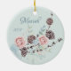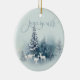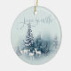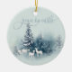 Enfeites de natal | Cena de madeira de cor aquosa com neve coberta por vergreens e 4 cabras brancas mágicas, especialmente para os amantes de cabras - - Paz na Terra em caligrafia à frente - data do nome e um belo spray floral de inverno atrás. Esta é parte do Winter Wonderland White Christmas Goats by WhimsicalArtwork™