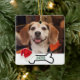 Personalize este Enfeites de natal fofo com uma foto do seu cão e o seu nome na frente, e o ano atrás colocado sobre o osso branco do cão com um chapéu vermelho de Papai Noel! Comece uma nova tradição para criar o ornamento pessoal do seu cão todo Natal. Adequado para uma foto horizontal 5x7. Um presente maravilhoso para dar aos pais, avós, ou para guardar por si mesmo. Também disponível em outros estilos.